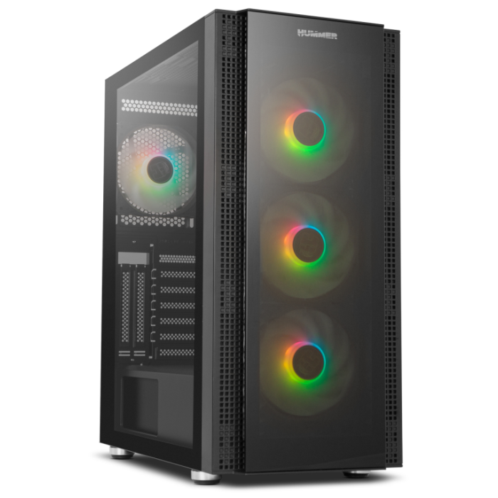 Nox Hummer Horus es una semitorre de alto rendimiento, muy espaciosa, de acero SPCC y con panel frontal y lateral de cristal templado, lo que permite lucir una configuración con la mejor iluminación ARGB. Este potente chasis incluye, además, cuatro ventiladores de 120 mm que te permiten mantener tus componentes a una temperatura baja.