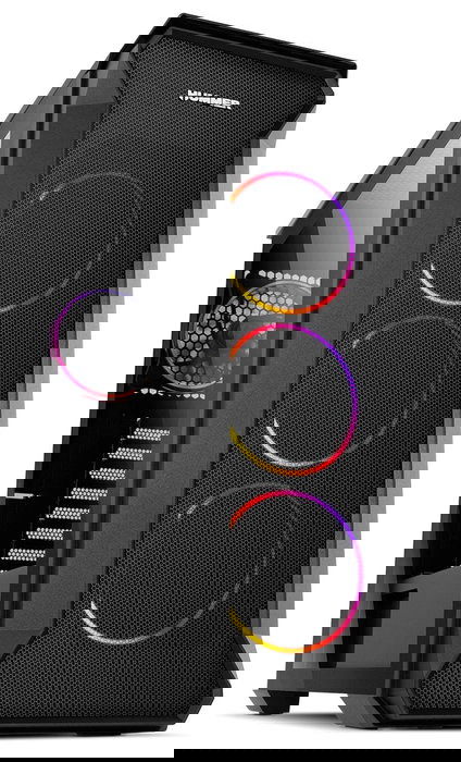 Una robusta torre con un original y rompedor diseño que permite crear espectaculares efectos de color gracias a sus cuatro ventiladores ARGB de 120 mm que incluye y que podrás contemplar en todo momento gracias a su panel lateral de cristal templado.