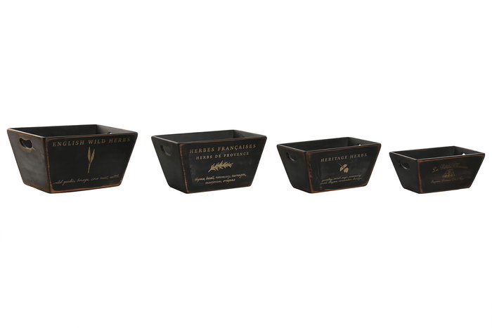 DKD Home Decor 1c24 Set de 4 Cajas Tradicionales de Madera de Abeto Negras con Asa para Almacenaje y Decoración 22 x 18 x 35 cm
