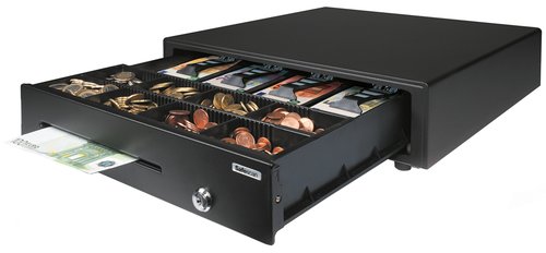 Su sólida cubierta de acero y la irrompible gaveta de plástico están diseñadas para cumplir con las necesidades de negocios de bajo volumen como iglesias, clubes, escuelas y otras organizaciones con tráfico moderado. Tiene 4 compartimentos para billetes y 8 para monedas, además de una ranura de almacenaje para cupones o comprobantes. Está equipado con una cerradura de 3 posiciones y 4 funciones y un cable RJ-12 para optimizar la facilidad de uso sin comprometer la seguridad. Puede configurar el cajón para que se abra automáticamente o manualmente. Tamaño: 410 x 415 x 115 mm.