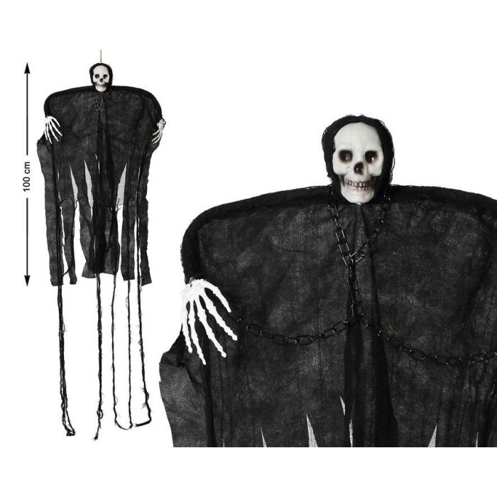 Decoración Colgante Esqueleto Con Capucha Negra Y Lazos Rojos 100 cm