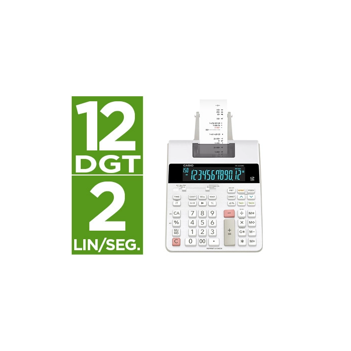 Casio Calculadora FR-2650RC con Impresora, 12 Dígitos, Blanco