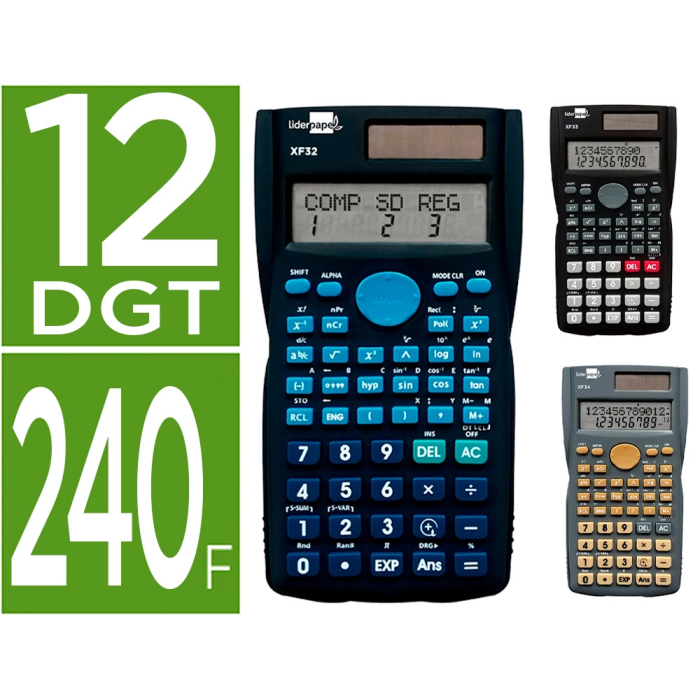 Liderpapel xf35 Calculadora Científica, 240 Funciones, Solar y Pilas, Expositor 10 Unidades, Colores Surtidos