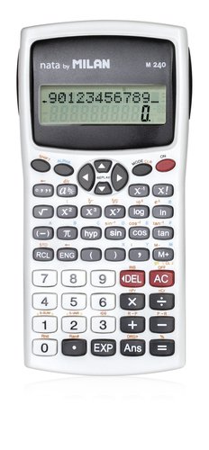 Calculadora científica M240 con: cuerpo blanco, pantalla de 2 líneas, 10+2 dígitos: visualización de expresión y resultado, 240 funciones (124 son científicas), Funciones: trigonométricas, parabólicas e hiperbólicas, cálculo <6 tipos de regresión diferentes, memoria para almacenamiento de medias y variables, cálculo: automático de quebrados, estadísticos, teclas de cursor para desplazarse, estructuración de paréntesis < 24 niveles, cómputos en grado centesimal, sexagesimal y medida de arco, transformación mutua entre coordenadas rectangulares y polares, conversión mutua entre sist. decimal y sexagesimal, valores aleatorios, porcentajes, fracciones, combinaciones, permutaciones, teclas grandes, funciones: SCI/FIX/ENG, form. de sumas. Incluye: 2 pilas AAA. Medidas: 167 x 84 x 19 mm.
