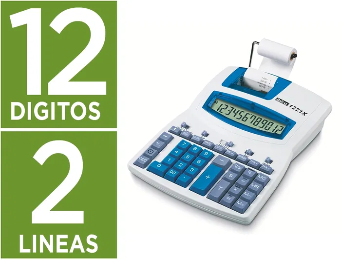 Con un rollo de papel estándar de 57 mm, el Ibico 1221X es una calculadorade impresión de dos colores (negra y roja). Con una pantalla LCD angulada de 12 dígitos, tiene un teclado profesional, imprime a 2.4 líneas por seg undo y tiene la opción de reloj o fecha en la pantalla.
