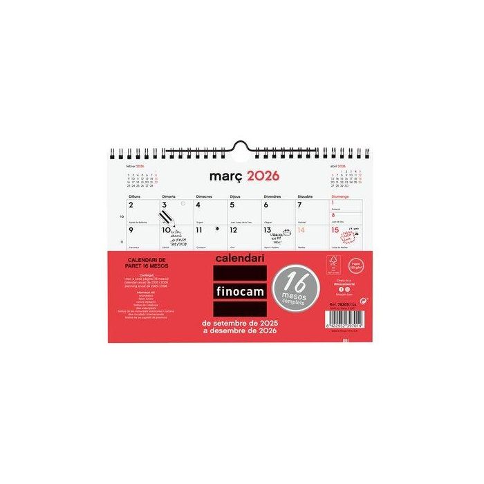 Calendari (2025-26) Finocam Catalan 16 Meses Neutro Paret M/V S 150X210