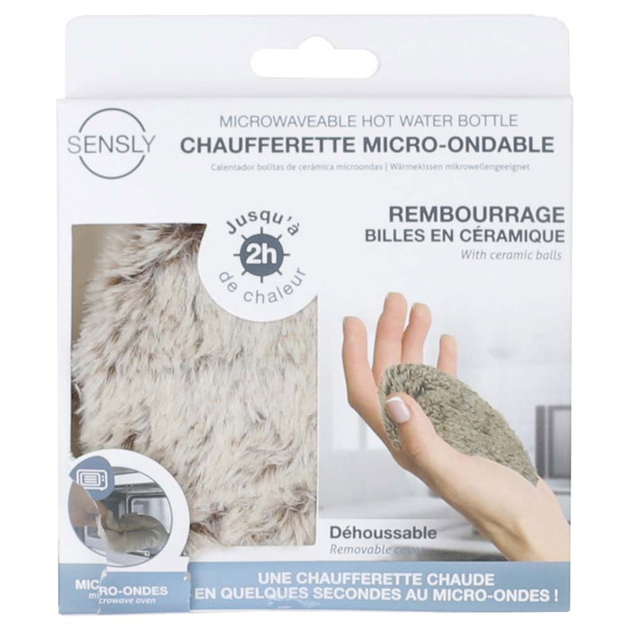 - Tiene en su interior una bolsa de cuentas de cerámica que se calientan en el microondas que, una vez colocadas en el artículo, desprenden