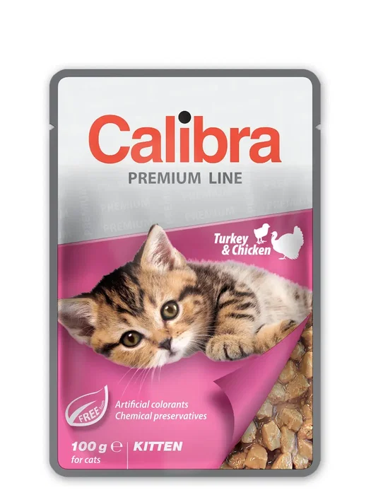 Deliciosos bocaditos en salsa de pollo y pavo para gatitos de la marca Calibra. La composición garantiza una alimentación equilibrada e incluye: subproductos cárnicos y animales en al menos un 40% (con un 5% de pavo y otro 5% de aves de corral), pescado y subproductos de pescado, subproductos vegetales y minerales. Estos tiernos bocaditos en salsa son una opción perfecta y sabrosa para mimar a tu gato.