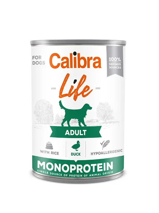 Calibra Dog Life Lata Adult con pato y arroz es el alimento húmedo completo y equilibrado para perros adultos. Presentado en un práctico pack de 6 latas de 400 gramos cada una, ofrece una solución nutritiva y deliciosa para la alimentación diaria de tu mascota. La combinación de pato y arroz proporciona proteínas de alta calidad e hidratos de carbono, ideal para una dieta variada y sabrosa. La marca Calibra garantiza calidad y confianza en productos específicamente formulados para el bienestar de tu perro.