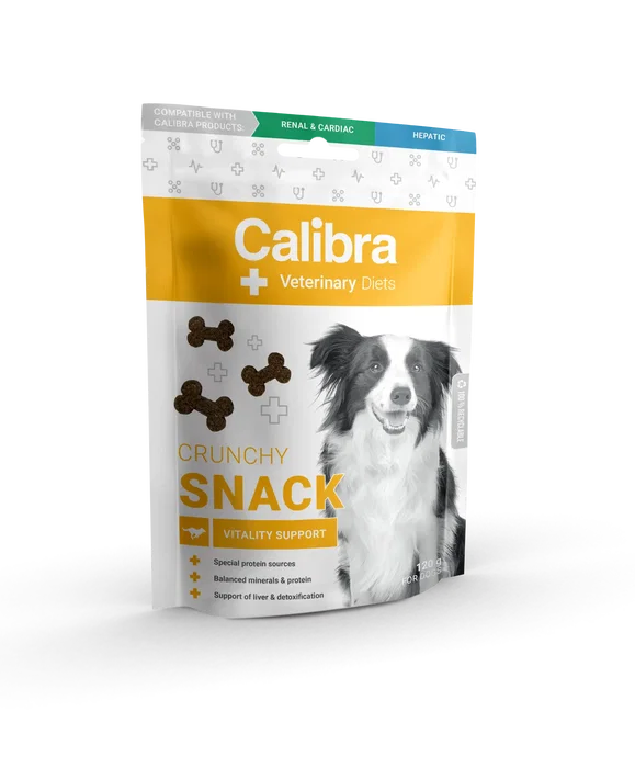 Calibra Vet Diet Dog Crunchy Snack Vitality Support es un snack saludable para perros, formulado para brindar soporte vital. Con un peso de 120 gramos, esta golosina crujiente de la marca Calibra es perfecta como premio ocasional para complementar la dieta de tu mascota.