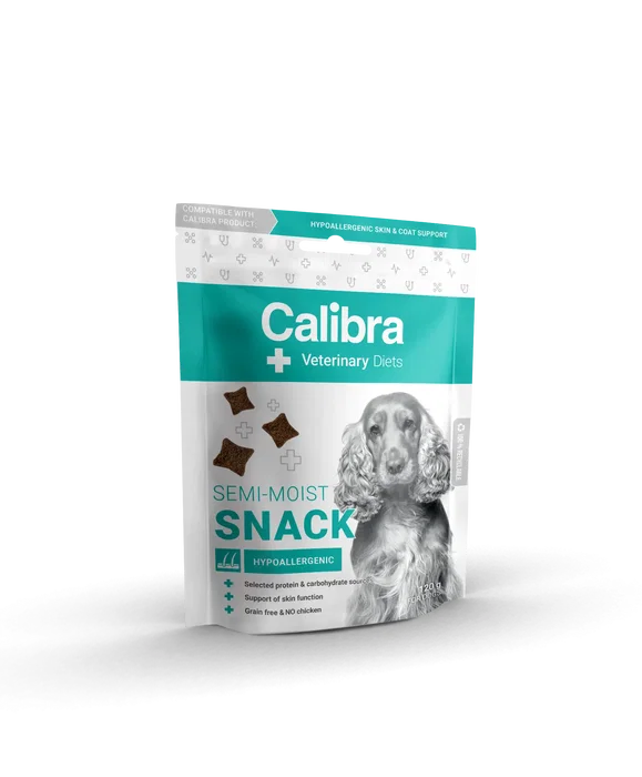 Las golosinas semi-húmedas para perros Calibra Vet Diet Snack, hipoalergénicas, son un complemento alimenticio ideal para tu mascota. Se presenta en un práctico paquete de 120 gramos. Perfectas para recompensar o mimar a tu perro con una opción saludable y de alta calidad de la marca Calibra.