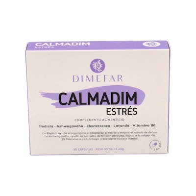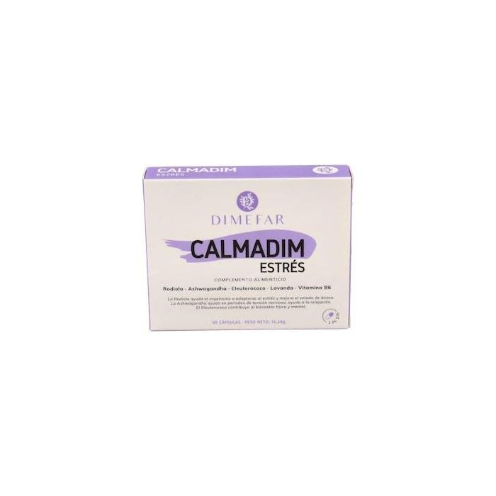 Dimefar Calmadim Estres 30 Cápsulas con Rodiola, Ashwagandha, Eleuterococo y Vitamina B6 para el Estrés y Sistema Nervioso