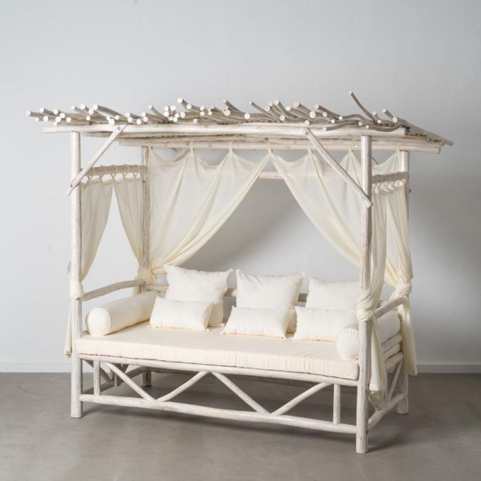 - Material: Madera de Teca. Incluye Colchón, Cortinas y Cojines