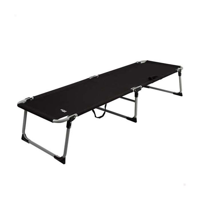 Descubre la cama plegable Aktive, el accesorio ideal que te acompañará en todas tus aventuras al aire libre, ya sea en tus vacaciones de camping, en tus salidas a la montaña o en tus días de playa. Está fabricada con estructura de acero y tejido 100% poliéster, materiales de primera calidad, resistentes y duraderos (soporta hasta 110 kg). Cuenta con topes antivuelco ubicados en la base de cada pata para una mayor estabilidad y seguridad en terrenos irregulares. Además, su práctico diseño plegable y su asa de transporte ubicada en el centro facilitan su traslado de manera cómoda y sencilla.