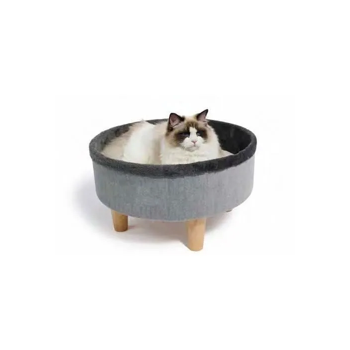 M Pets Cama redonda elevada MPE6953182741947 Gris 47 x 47 x 26 cm Pata de madera Cojín mullido