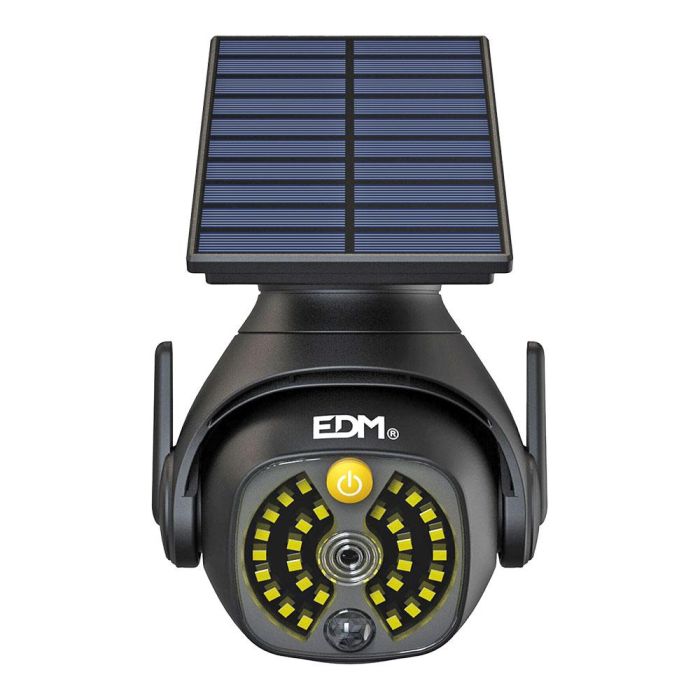 Edm Cámara Vigilancia Simulada Solar con Aplique, IP44, 5W Luz Fría 6500K, Sensor Crepuscular y Movimiento, 3 Modos