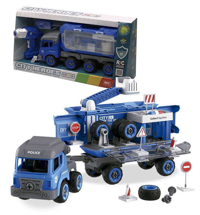 Tachan Camión Policía RC Lm8027 Sonido Montaje Eléctrico Desmontable 91 Piezas +3 Años