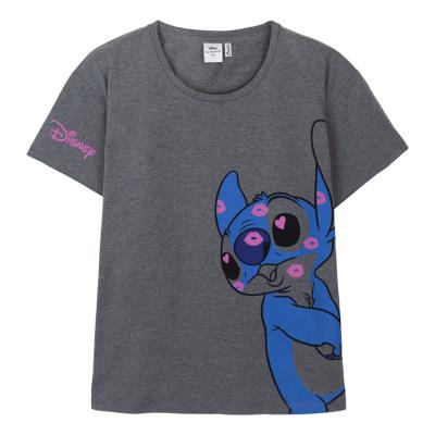 Camiseta de Manga Corta Mujer Stitch Gris oscuro Gris XL