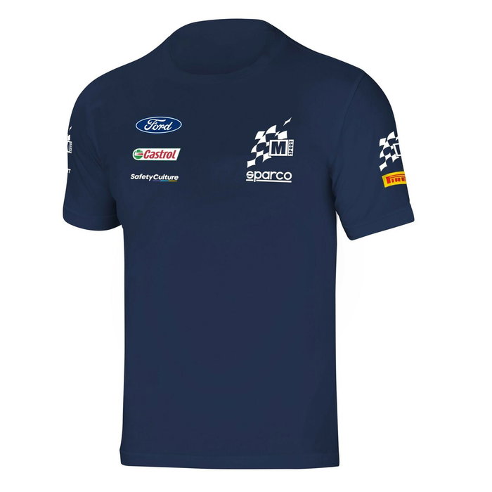 La camiseta de la colleción Sparco | M-Sport replica fielmente la ropa dedicada a los pilotos y a la famosa tripulación del famoso equipo WRC. Los logotipos oficiales del equipo están posicionados de maniera fiel, replicando la camiseta de los pilotos y del equipo.