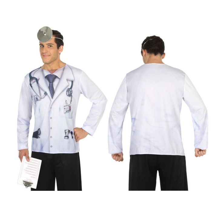 Disfraz Camiseta Doctor Adulto Hombre Blanco Talla M-L Poliéster Fiesta Carnaval Oficios