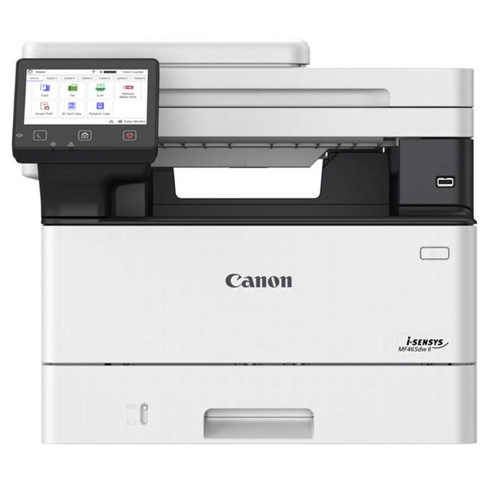 La Canon i-SENSYS MF465dw II es una impresora multifunción láser monocromo diseñada para entornos profesionales que requieren alta productividad, conectividad avanzada y máxima eficiencia. Con funciones de impresión, copia, escaneo y fax, ofrece un rendimiento rápido de hasta 40 ppm y una gestión documental completa, ideal para oficinas, pymes y grupos de trabajo con volumen medio-alto.