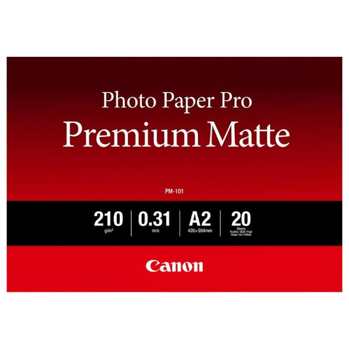 Canon 8657B017 PM-101 Pro Premium Matte Papel Fotográfico Mate A2, 210 g/m², Blanco, 20 Hojas por Paquete