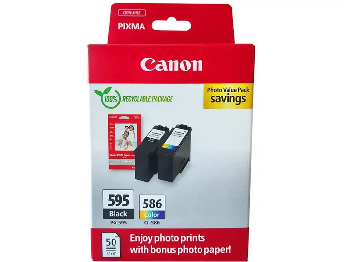 Ink-jet canon multipack pg595 negro + cl586 color + 50 hojas papel foto 10x15 cm