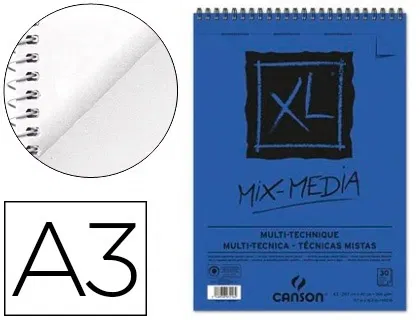 Canson Bloc Dibujo Acuarela XL Mix Media Grano Medio A3 Microperforado Espiral 29,7x42cm 30 Hojas 300 gr/m2
