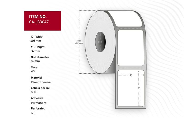 Capture Etiqueta 105 x 32 mm Blanca Permanente Adhesivo DT Núcleo 40 mm Ø 82 mm 850 Etiquetas por Rollo 28 Rollos por Caja