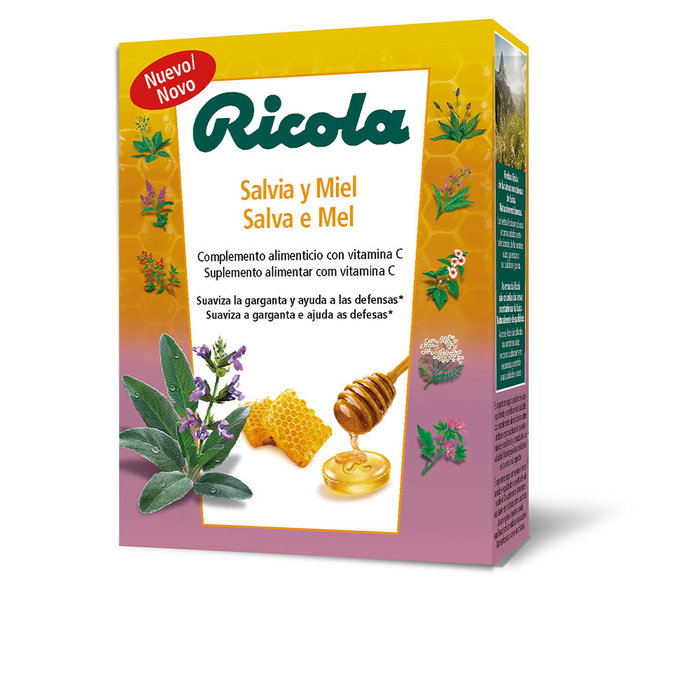 - Ingredientes: Azúcar, Jarabe De Glucosa, Miel (6,3 %), Extractos (0,7 %) De Salvia Y De La Mezcla De Plantas Aromáticas Ricola, Vitamina C (Ácido L-Ascórbico), Aromas Naturales, Acidulantes (Ácido Cítrico, Ácido Málico), Aceite De Salvia, Mentol.