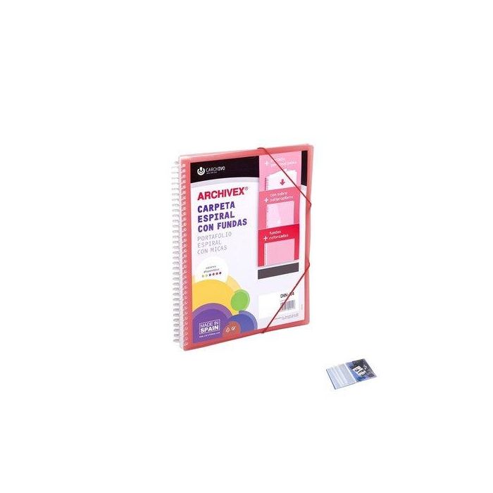 Carchivo Carpeta Archivex-Star Espiral PP Extra 80 Fundas A4 con Sobre y Cierre de Gomas, Rojo