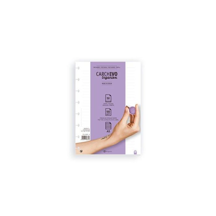 Carchivo Recambio Cuaderno Ingeniox A5 50 Hojas Rayas Horizontal Papel 100g FSC ECO-LABEL