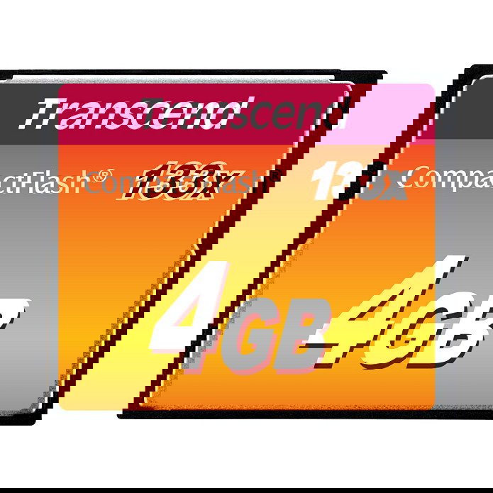 Transcend TS4GCF133, 4 GB, CompactFlash, MLC, 50 MB/s, 20 MB/s, Negro