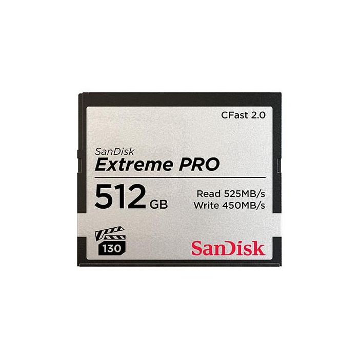 SanDisk Extreme Pro, 512 GB, CFast 2.0, 525 MB/s, 450 MB/s, Negro, Gris