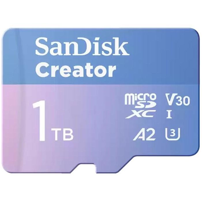 SanDisk Creator, 1 TB, MicroSDXC, Clase 10, UHS-I, 190 MB/s, 130 MB/s