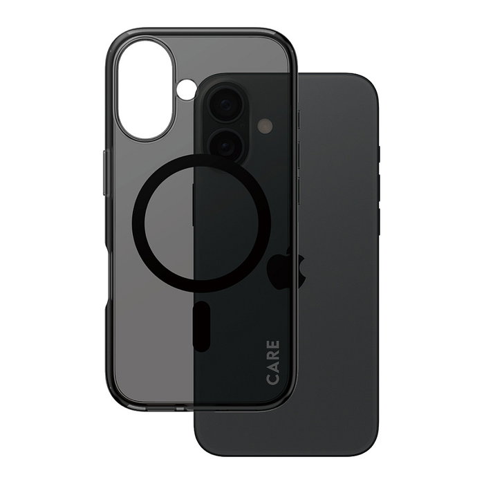 PanzerGlass CARE Flagship Smokey MagSAFE Funda para iPhone 16, TPU, Resistente a Rayones y Golpes, Negro