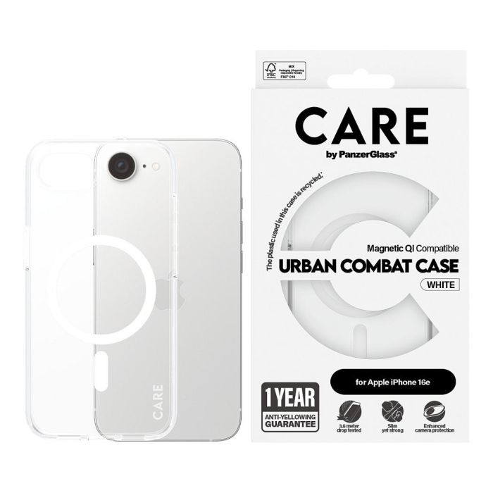 PanzerGlass CARE™ by ® Urban Combat Case Transparent w. White Qi Compatible iPhone 16e, Funda, Apple, Apple - iPhone 16e, Transparente