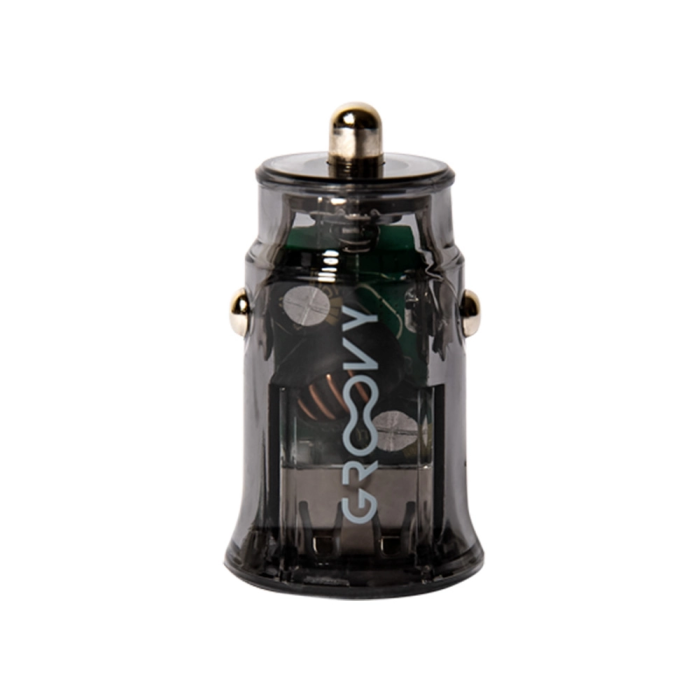 Groovy Cargador Coche Doble USB a 3.4A Gris Oscuro con USB-C, Diseño Transparente y Protección contra Sobrecarga