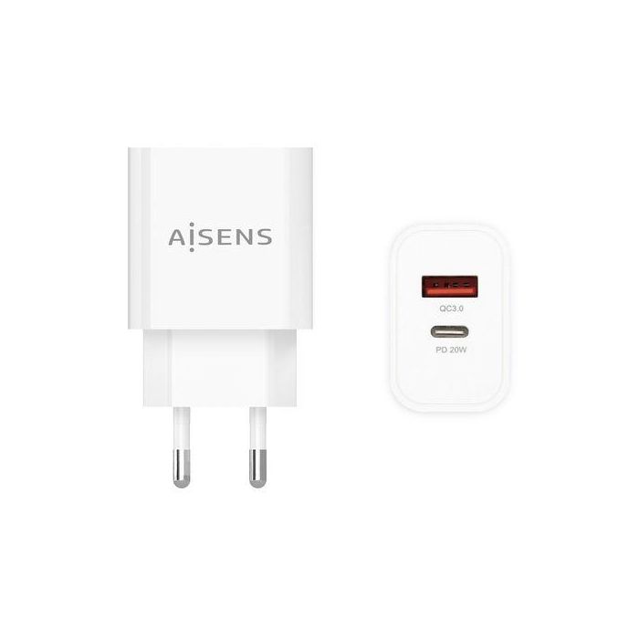 AISENS® â Cargador 20W, 1xUSB-C PD3.0, 1xUSB-A QC3.0, Blanco