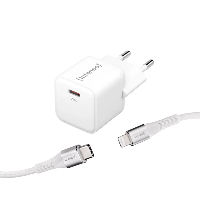Intenso 7803052 Cargador GaN USB-C 30W con Carga Rápida, Cable Lightning 1.5m, Blanco, Interiores, EU