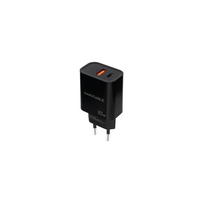 NANO CABLE 10.10.2012 Cargador USB Pared 30W USB-C/PD + USB-A/QC Negro
