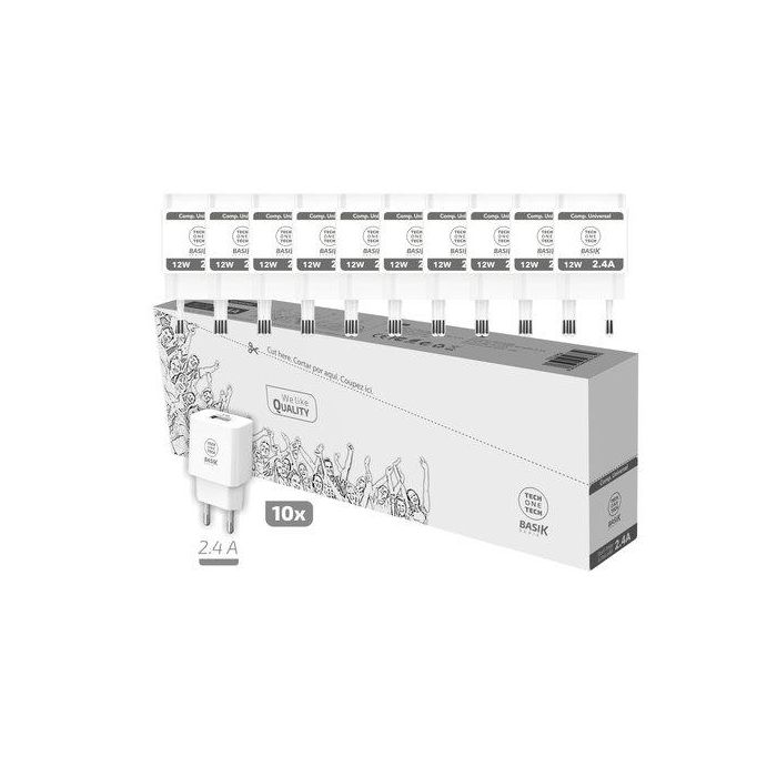 Cargador Tech-One-Tech Pared Blanco Usb-A 2,4A Pack De 10