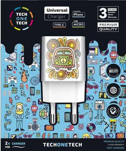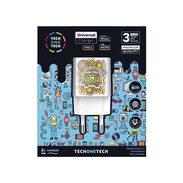 Cargador Tech-One-Tech Doble De Pared 2Xusb Green Camper Alto Rendimiento 2,4A