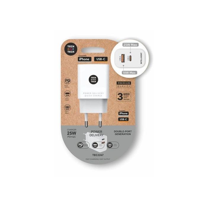 Cargador Tech-One-Tech Pared Blanco Usb-C/Usb-A 30W (Set de 20)