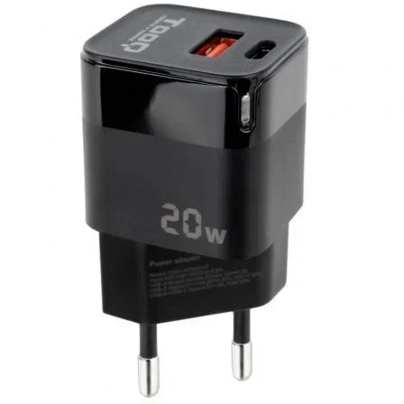 TQWC-QCPD20 Cargador de Pared USB-C/PD + USB-A/QC 20W, Negro
