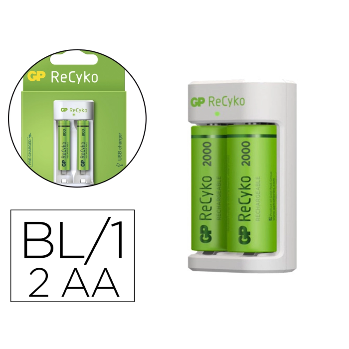 Maxell Cargador de Pilas Recargables AA/AAA USB, Incluye 2 Pilas AA 2100 mAh, Carga Rápida 3.5h/8h, Indicador LED