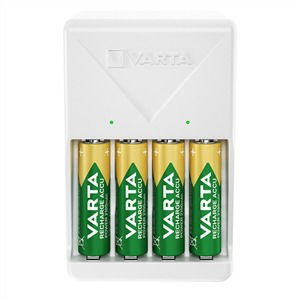 Cargador para 2 o 4 pilas AA/AAA. Tiempo de carga: 4,5 horas. Indicador de carga LED verde. Se puede usar en todo el mundo ya que tiene voltaje universa (100-240V). Carga lenta para obtener los mejores resultados. Funciones de seguridad completas: Desconexión de minus delta V, temporizador de seguridad, protección contra cortocircuitos, detección de pilas alcalinas y malas, protección contra polaridad incorrecta.