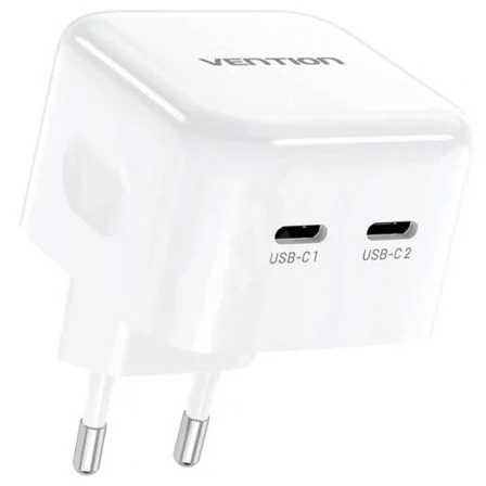 Cargador Vention USB-C+USB-C GaN (35W/35W) color blanco