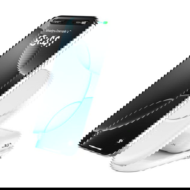 Belkin BOOSTCHARGE Cargador Inalámbrico Qi2 2 en 1 para iPhone y Reloj Inteligente, 25W, Cable USB-C 1.5 m, Blanco