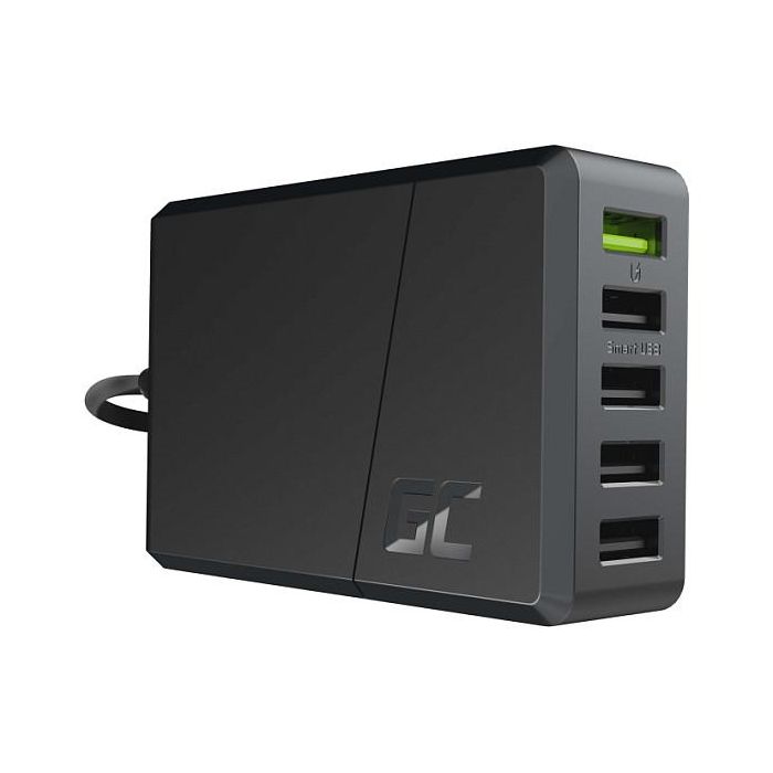 Green Cell Cargador 5 Puertos USB 52W CHARGC05 | Quick Charge 3.0 y PD | 12V | Negro | Alimentación AC 100-240V